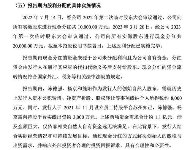 按照公司的说法,这是因为公司的创始自然人股东陈德强等,需要缴纳个人所得税8000万元,再加上要对员工持股平台出资3000万元,合计1.1亿元。
