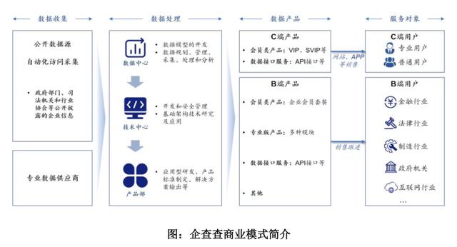 企查查做的是商业大数据生意,具体是先收集信息、处理信息,并做成产品卖给用户。