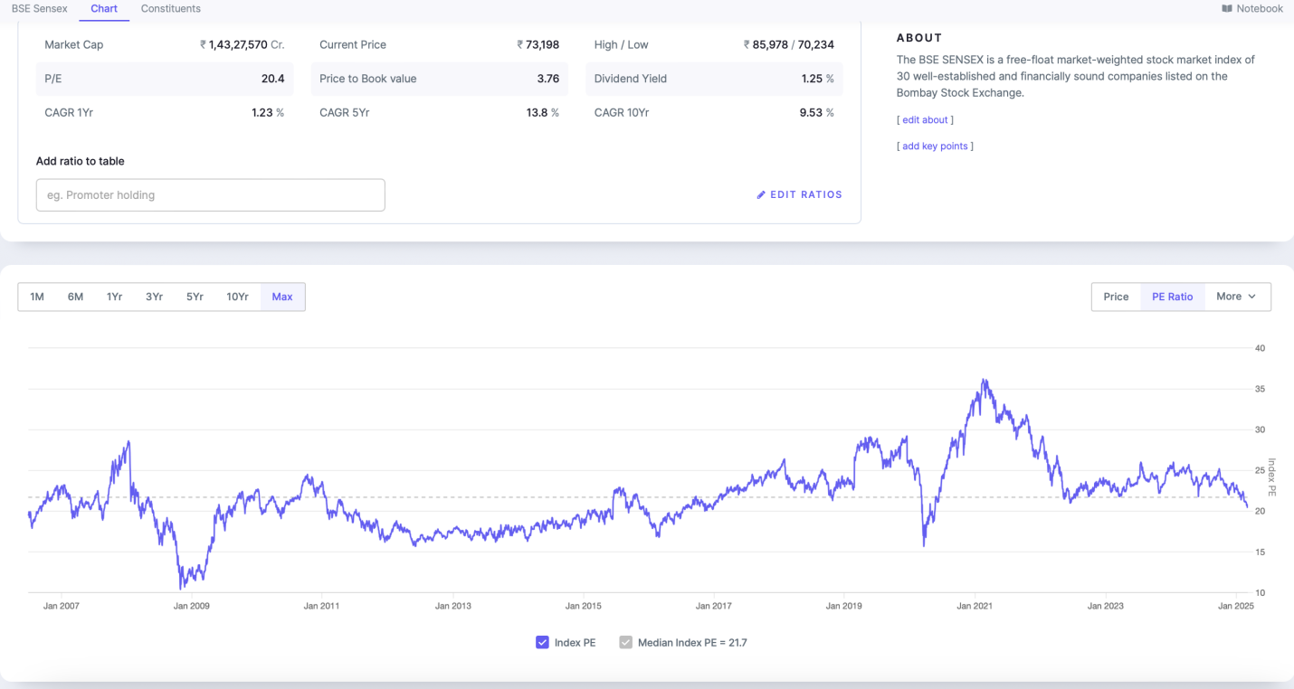目前印度的Sensex指数的未来12个月forward PE(市盈率)是20倍,我承认forward上有赌的成分,但过去12个月的trailing静态市盈率,是20.4倍,这是什么概念呢,印度股市历史上市盈率估值的中位数是21.7,也就是说印度股市自己跟自己比,此时此刻比历史上一半以上时间,要便宜。