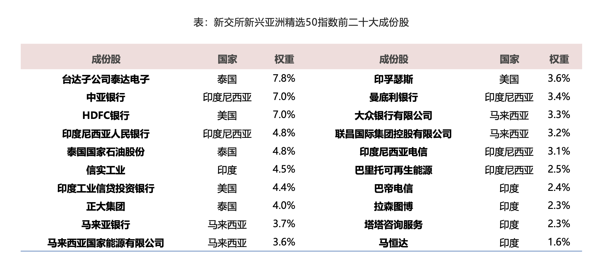 新交所新兴亚洲精选50指数就是跟踪这些公司的指数,它有下面一些特征: