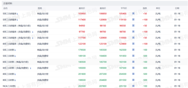 正极材料价格