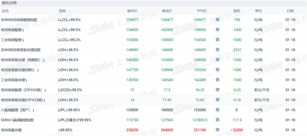 锂化合物现货价格
