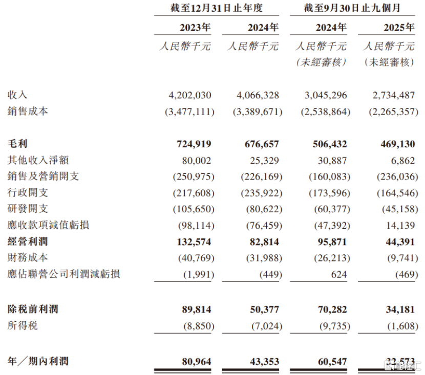 2023年、2024年及2025年1-9月,天下秀的营业收入分别约42.02亿元、40.66亿元、27.34亿元,毛利率分别为17.3%、16.6%、17.2%,对应的净利润分别为8096.4万元、4335.3万元、3257.3万元。