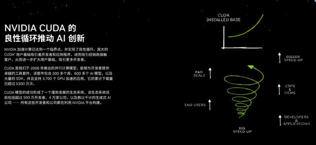 起初,CUDA的商业价值并未被市场立刻接受。但英伟达展现出了惊人的战略耐心与远见:向全球高校和研究所免费开放并设立研发中心;以资金扶持创业公司使用;持续开源核心软件库;甚至确保廉价的消费级游戏显卡也支持CUDA,将开发门槛降至千元级别。