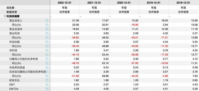 据公司情报专家《财经涂鸦》消息,近日昊海生科(688366.SH)发布2022年财报,2022年公司实现营业收入21.30亿元,同比增加20.56%。公司在2022年收入增幅明显主要是由于合并范围在2022年新增了南鹏光学的角膜塑形镜及其配套收入、以及欧华美科在2021年9月纳入合并范围,2021年财报仅合并了4个月而2022年纳入了全年收入。公司在2022年的归母净利润仅为1.80亿元,同比下降幅度高达48.76%;每股收益为1.04元,同比下降48.00%。