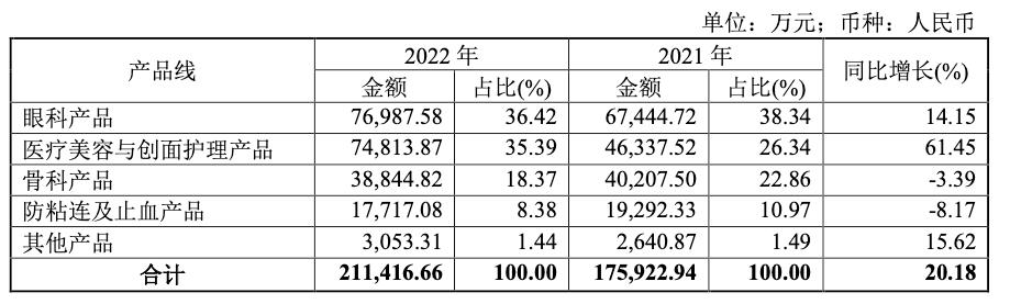 各产品线营收变化(来源:昊海生科年报)