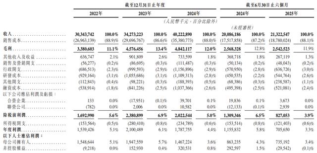 2025年上半年,中伟股份的营收约为213.23亿元,同比增长6.2%;净利润约为7056.5万元,较2024年同期的1.16亿元下降38.95%。按非国际财务报告准则计,其2025年上半年的经调整净利润(EBITDA)约2.29亿元,同比亦下降2.34%。