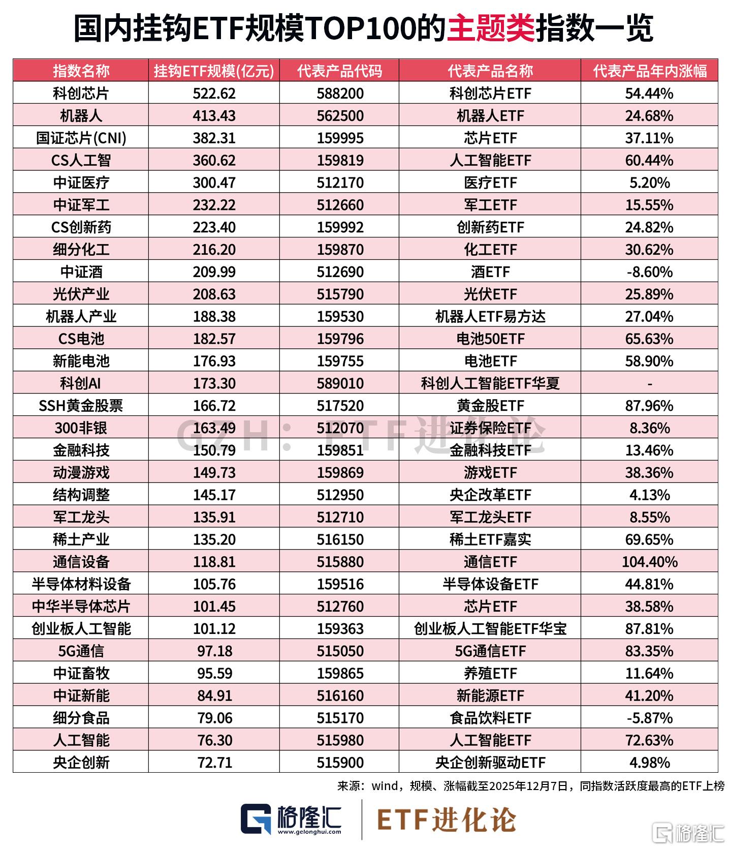 今天梳理国内挂钩ETF规模TOP100的指数及代表产品,并整理出最具市场影响力的百亿级ETF全名单。