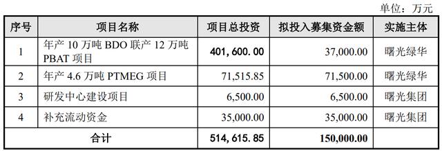 据贝多商业&贝多财经了解,曙光集团于2024年12月7日递交招股书,也是沪市主板2024年首个获得IPO受理的企业。本次报考上市,曙光集团原计划募资15亿元,将用于年产10万吨BDO联产12万吨PBAT项目、年产4.6万吨PTMEG项目、研发中心建设项目。