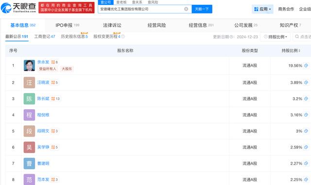 天眼查App信息显示,曙光集团成立于1990年3月,位于安徽省安庆市,前身为安徽省安庆曙光化工(集团)有限公司。目前,该公司的注册资本为6000万元,法定代表人为陈长斌,主要股东包括余永发、王林等。