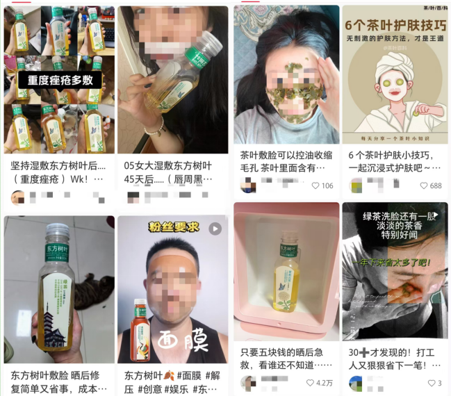 小红书上,讨论东方树叶能否用来敷面膜的笔记已达上百万篇。