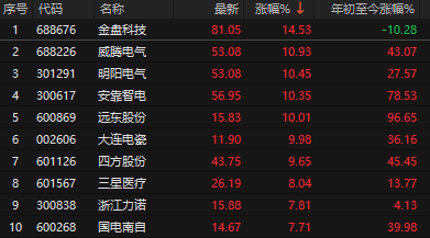 除了燃气轮机外,电网设备同样也调整了很多,昨天跟大家提过美国232条款关税修正再次印证北美中大型变压器供应短缺,利好国内变压器出海。今天电网设备板块也暴涨,金盘科技暴涨超14%,威腾电气、明阳电气、安靠智电涨超10%。