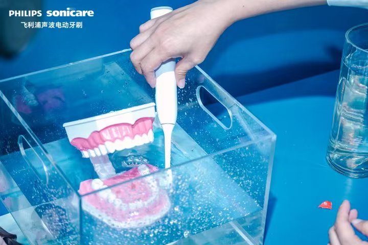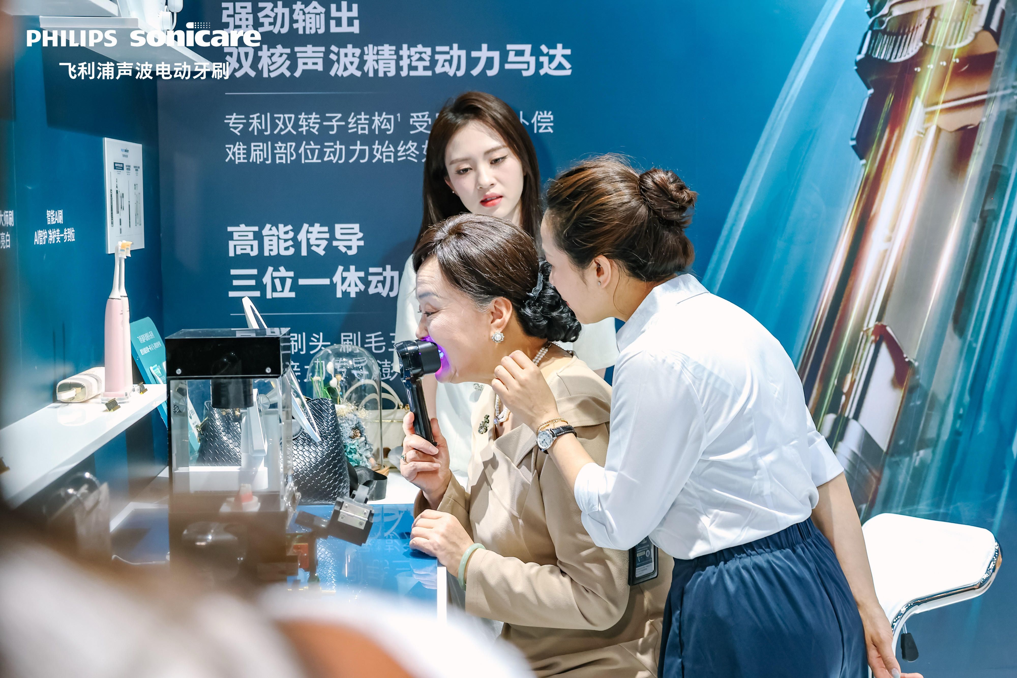设置飞利浦健康Lab区,展现产品全新升级声波洁牙科技实力——现场设置微泡水流实验、隔水冲刷残渣实验等互动装置,通过现场操作演示,可以直观体验全新升级的声波洁牙科技如何深入齿缝死角,实现温和高效清洁。