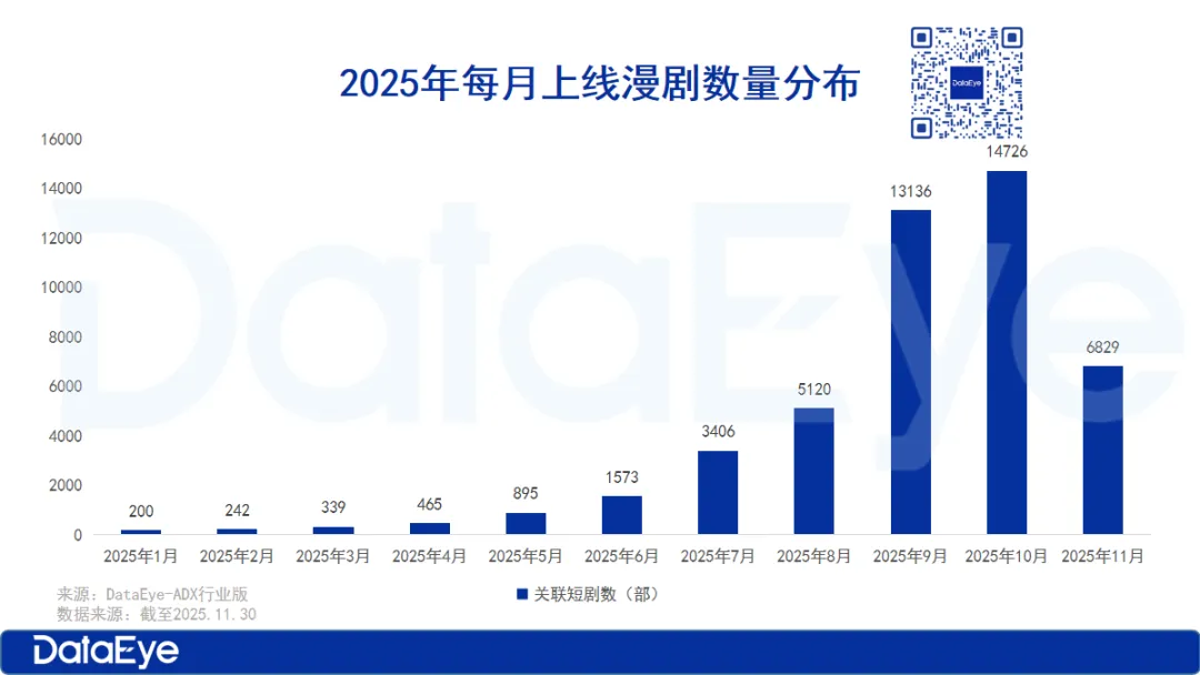 两年多过去,短剧已经从小众内容升级为现象级产业,其市场规模或达千亿。最直观的变化体现在供给上——《中国微短剧行业发展白皮书(2025)》显示,2025年全年上线竖屏剧预计约4万部。李涛告诉我们,丰行的产量就在今年年内实现了飞跃式增长,从上半年的月均十几部攀升到11月的单月61部。