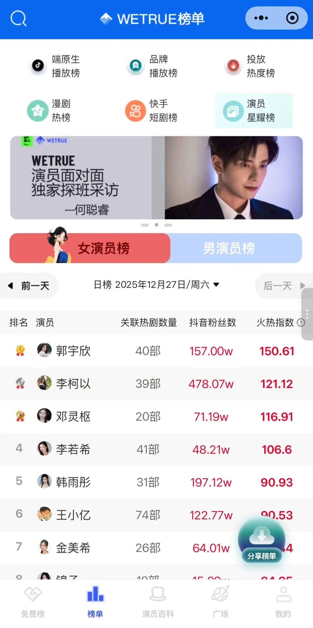 光环之下,短剧演员可能是最焦虑的职业之一。短剧项目周期很短,作品和演员热度随之快速变化,短剧演员的排名以天为单位更新。