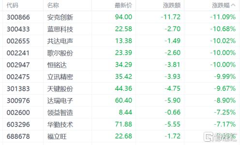 截至发稿,港股高伟电子大跌超17%,瑞声科技跌超12%,比亚迪电子、丘钛科技跌超8%;A股歌尔股份、立讯精密、共达电声跌停。