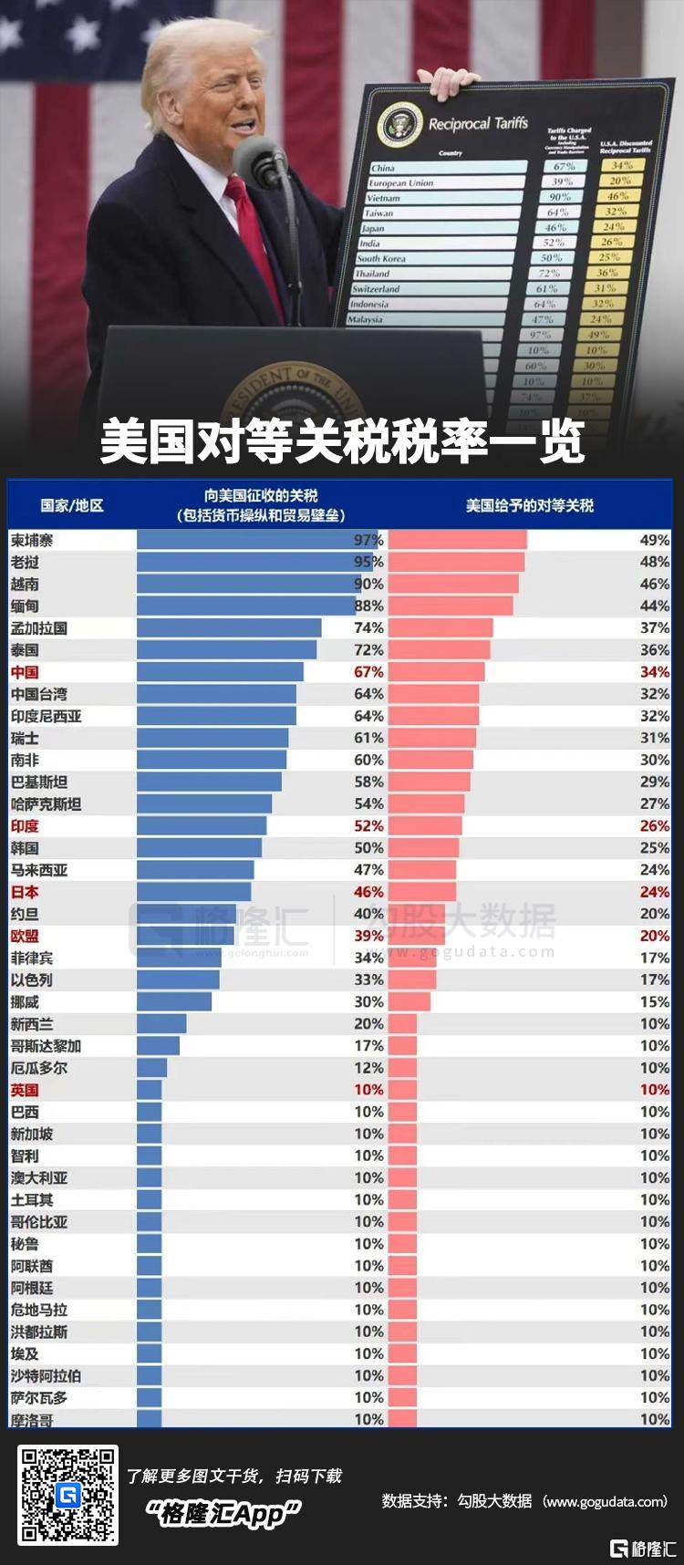起步10%、最高49%,特朗普誓要向全世界征收“对等关税”。