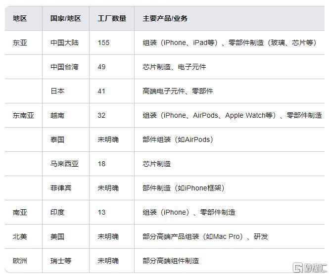 苹果的“世界工厂”主要分布在中国、东南亚(越南、泰国、马来西亚、菲律宾等)、印度,美国、日本、欧洲也有少量组装工厂。