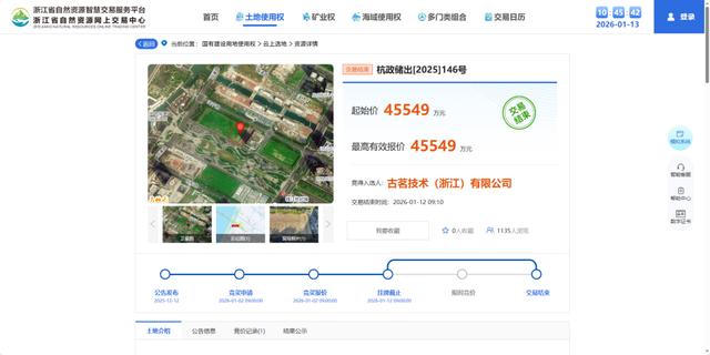1月12日,古茗技术(浙江)有限公司以4.55亿元总价竞得杭州钱江世纪城核心区一宗商业用地,地块面积超1.2万平方米,成交楼面价6100元/㎡。古茗此次竞价购地,或将在杭州建设其自有产权的总部大楼。