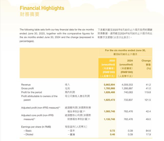 古茗上市后的财报同样表现良好,据半年报披露,2025年上半年,古茗实现收入56.63亿元,同比增长41.2%;归母净利润16.25亿元,同比增长121.5%。
