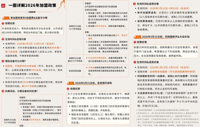 另一方面,通过高额加盟费减免和专门的大店装修补贴,鼓励老加盟商在优质商圈增店或升级门店形象,向承载更多体验与消费场景的“六代大店”转型。在2026年5月31日前,为完成同商圈新签的同一加盟商减免8.88万元加盟费,以及为符合条件的门店,提供5万元的大店装修补贴(含新开、搬迁、原址扩大)。