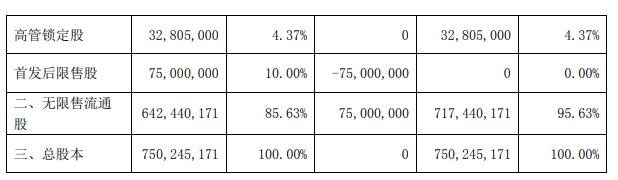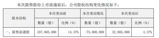 本次解除限售的股份为2018年重大资产重组发行的股份,原定限售期为36个月。