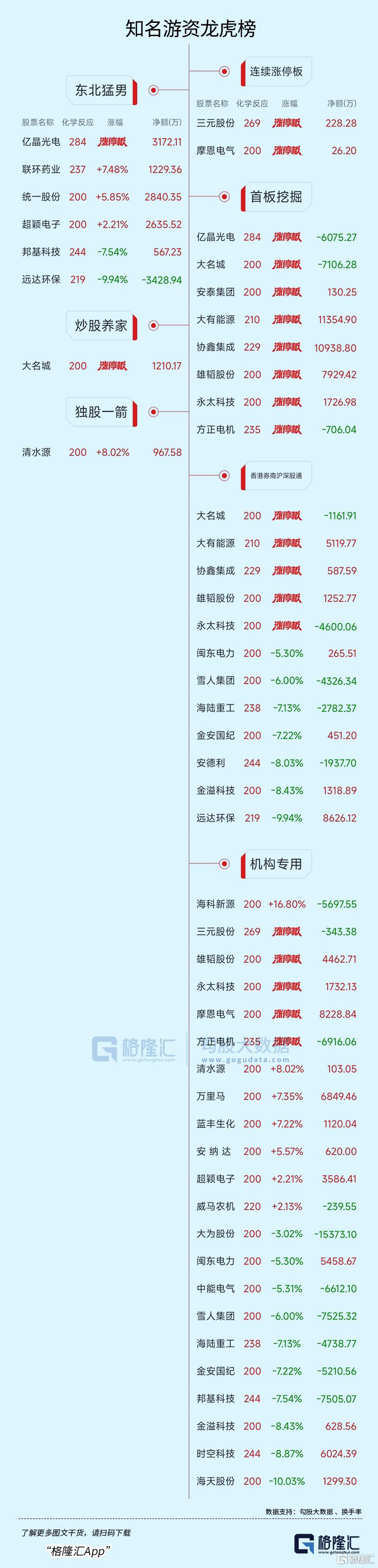 东北猛男:净买入亿晶光电3172.11万元、统一股份2840.35万元,净卖出远达环保3428.94万元