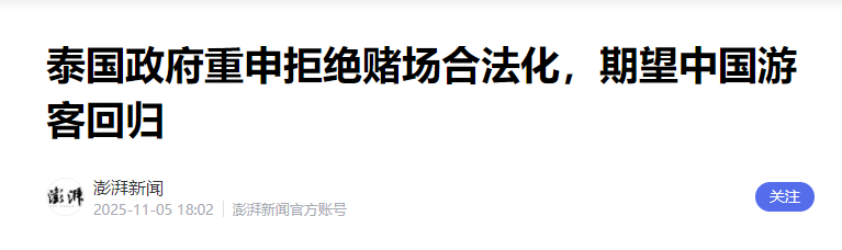 前段时间,泰国还重申不搞赌场。