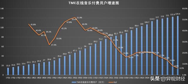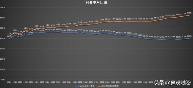 从上图可以看出,留在TME音乐平台的用户,付费意愿在提升,但付费用户规模增速有所放缓。