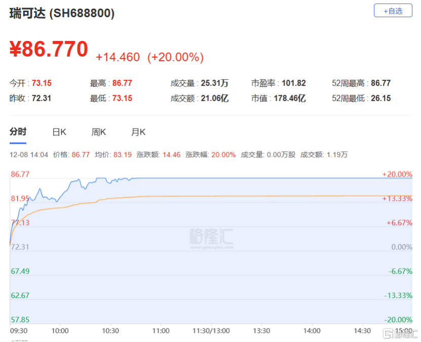今日20CM涨停,换手率12.31%,成交额21.06亿,沪股通专用席位净买入1.95亿元。