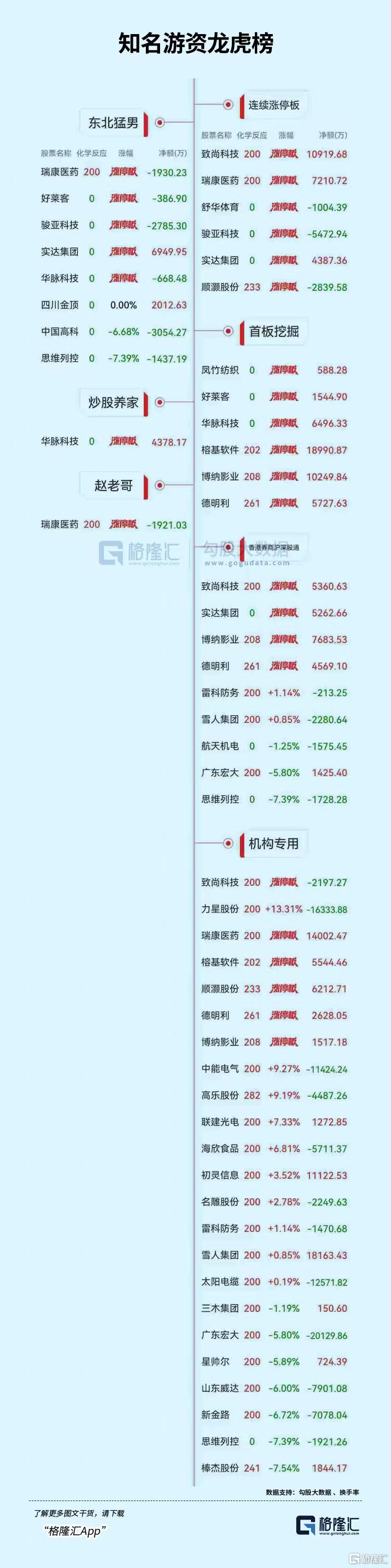 东北猛男:净买入实达集团6950万元,净卖出中国高科3054万元、骏亚科技2785万元、瑞康医药1930万元