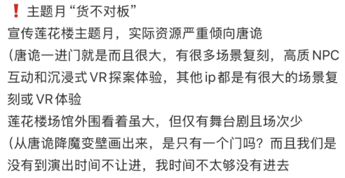 此外,2026年2月,爱奇艺旗下首个线下乐园项目——扬州爱奇艺乐园已正式开园。据了解,该乐园集结了《狂飙》《莲花楼》等IP,打造沉浸式线下体验。目前,社交平台对该乐园评价褒贬不一,VR体验感超出预期成为亮点,但门票价格高、性价比不足以及《莲花楼》等IP“货不对板”的质疑声同样存在。