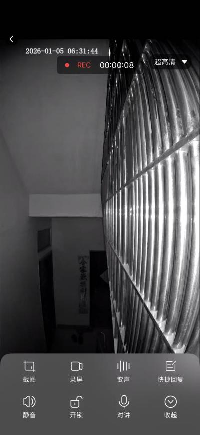 智能门锁用户聂女士向记者展示的实时监控画面显示,即便在昏暗的楼道中,红外夜视仍能清晰捕捉到3米外两户邻居的门前动态,理论上她可掌握邻居的进出状况。此外,她还能对监控画面进行“截图”和“录屏”。