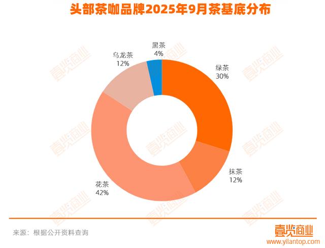 9月,茶咖品牌们选用了5款茶底,其中,使用最多的仍为花茶,其次是绿茶,使用最少的是黑茶。