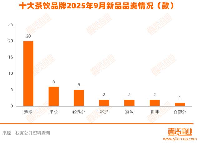 在茶饮赛道,热饮属性更强的奶茶品类迎来了爆发式增长。9月共推出21款奶茶新品,占新品总数的52.6%,成为绝对的主导;果茶与轻乳茶则分别上新6款和5款,各自占比15.7%与13.1%。这与8月仅有6款奶茶新品,占比14.6%的情况,形成鲜明对比,显示出品牌策略随季节变化已作出明显调整。