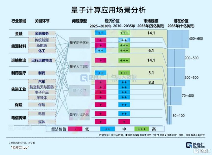 而且这还只是开始,兴业证券分析说,量子计算未来能解决的问题都是硬骨头:比如模拟分子结构帮药企加速新药研发,优化物流路线帮企业省成本,甚至还能给AI算力提级,这些都是万亿级的市场。