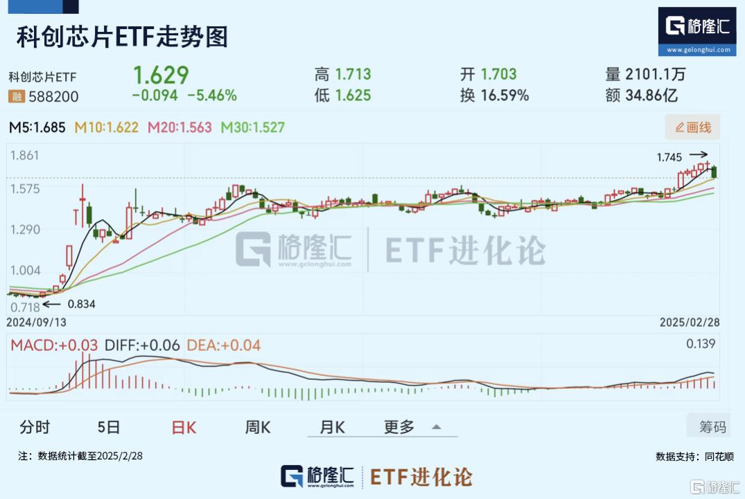 半导体板块2月强势上涨,科创芯片ETF在2月涨13.36%。