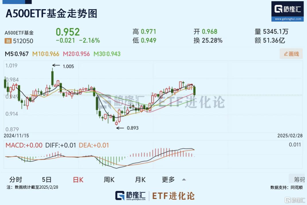 在市场剧烈回调的情况下,A500ETF基金(512050)跌2.16%,2月涨2.92%,体现出一定的韧性,年初至今合计净流入15.76亿元。