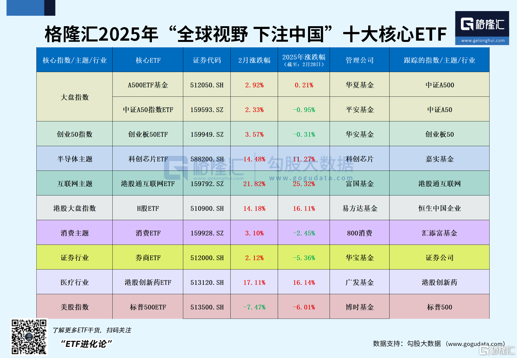 格隆汇2025年“全球视野,下注中国”十大核心ETF最新2月表现出炉,2月累计上涨7.16%,年初至今涨5.4%。