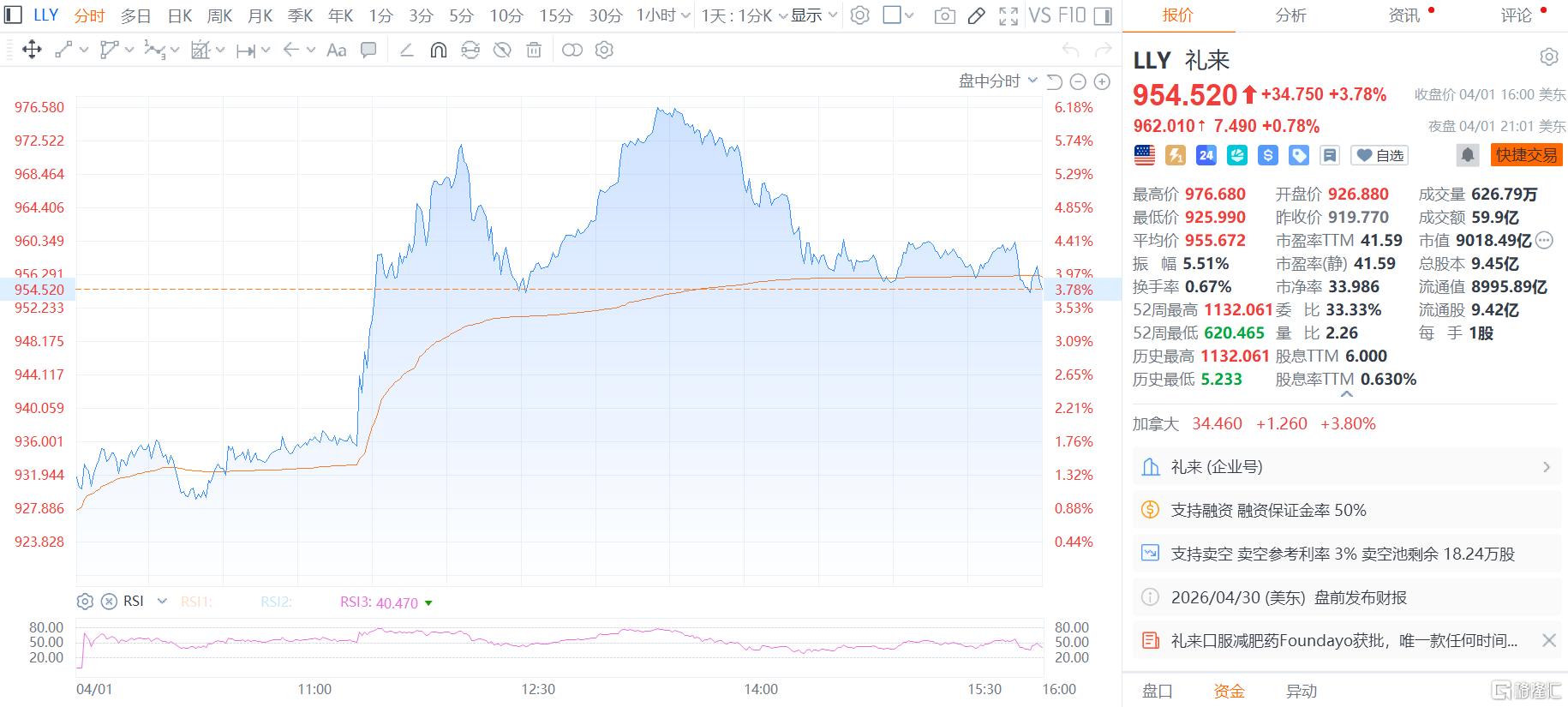 周三收涨3.78%报954.52美元,目前总市值9018.49亿美元。