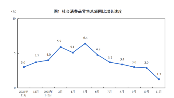 今天统计局公布了11月经济数据,社零同比增长1.3%,大幅低于预期的2.8%;规模以上工业增加值同比增长4.8%,高于预期的3%。这个社零跳水的有点厉害,再加上上周五公布的11月份中国居民部门新增贷款首次录的负值,说明内需还是有压力的。