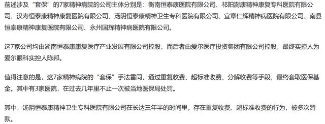 2026年2月初曝光的湖北襄阳恒泰康医院骗保案,其最终股权指向了陈邦。根据天眼查公开信息显示,涉事医院由湖南恒泰康康复医疗产业发展有限公司全资控股。进一步穿透股权可见,湖南恒泰康的间接控股股东为爱尔医疗投资集团有限公司。