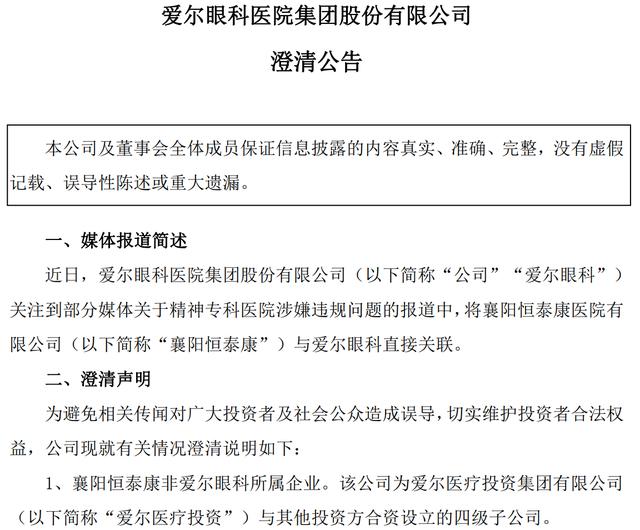 监管的缰绳正在收紧,资本市场的耐心正在消减,公众的审视正在加强。在这样的大背景下,单纯的法律切割声明已显得单薄。对爱尔眼科而言,真正需要的是一次彻底的治理结构透明化,一次从实控人到上市公司全面的合规体系重建。