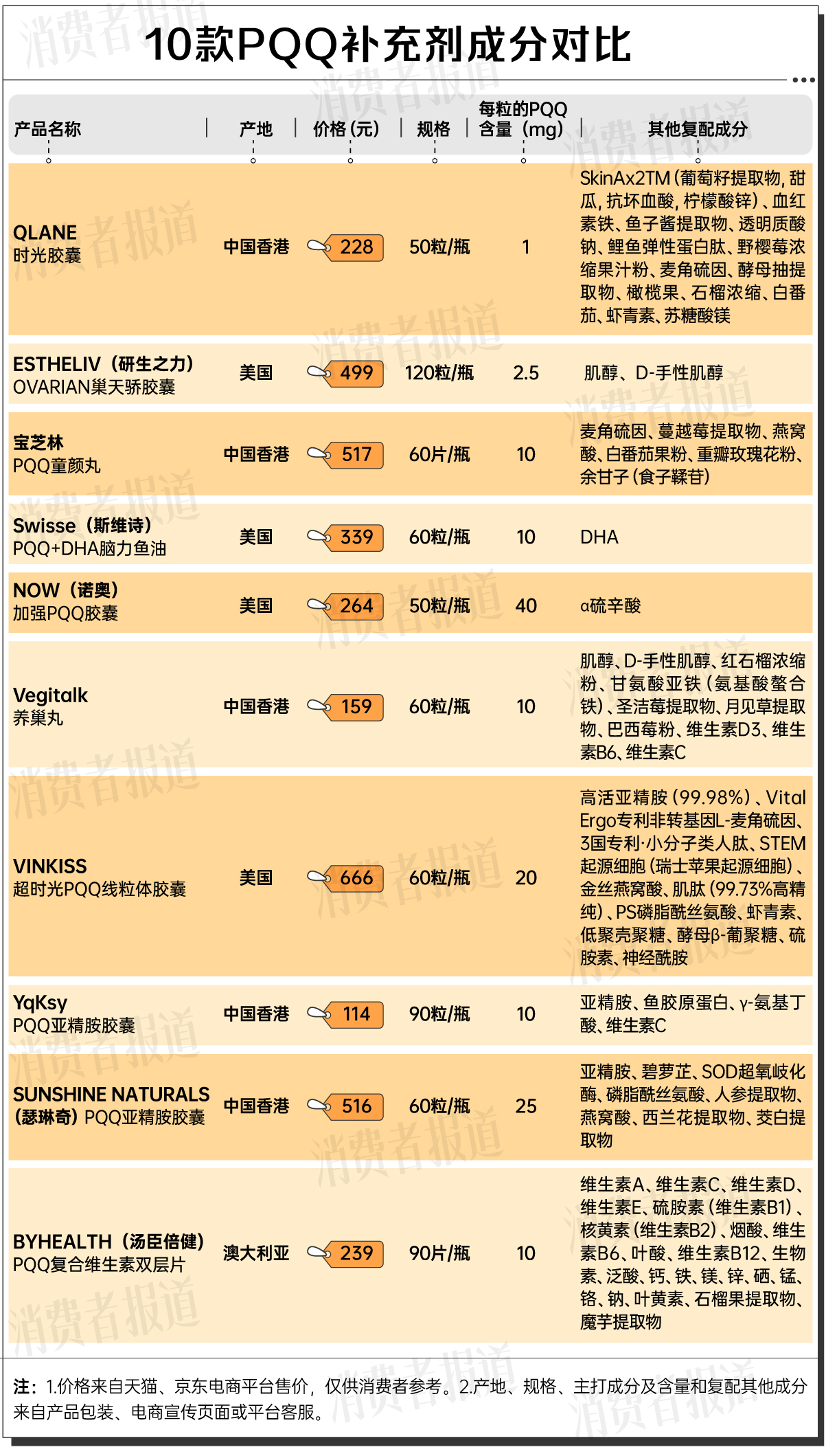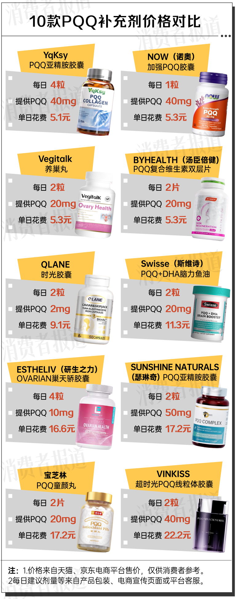 10款PQQ补充剂对比:持续补充一个月最高花费666元