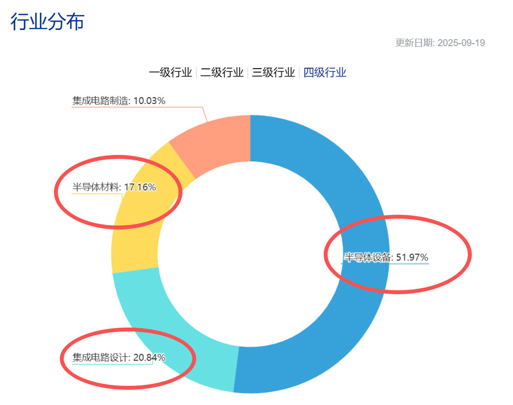 数据显示,9.1-9.19期间,A股半导体板块的个股涨跌幅中位数是-1.9%,近六成个股都是下跌的。但是半导体设备ETF(561980)跟踪的中证半导重仓半导体设备、材料和芯片设计(占比90%),9月以来涨幅却位列主流半导体指数第一名、超过6%。