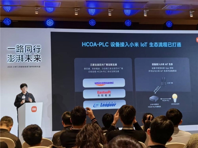 12月17日,小米在国家会议中心举办2025“人车家全生态”合作伙伴大会,大会设有1个主论坛和9个分论坛,涵盖小米澎湃OS、互联网服务、IoT与生态链业务等。力合微作为国内PLC(电力线通信)芯片主要厂家,HCOA-PLC标准制定及HCOA-PLC芯片厂家,应邀参加了会议。