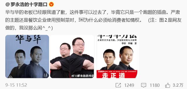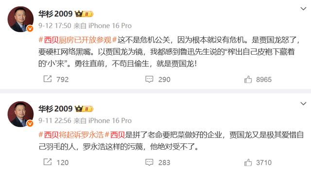 值得一提的是,在“罗永浩与西贝之争”初期华杉就曾多次发文支持西贝,并表示西贝要“硬杠网络黑嘴”,引发罗永浩的强烈不满,在直播间怒斥华与华缺乏道德感和正义感,将本就处在品牌危机中的西贝彻底推上舆论审判席。