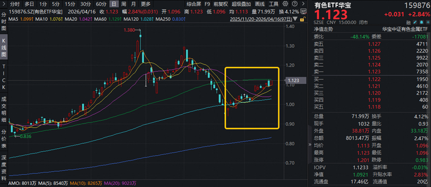 【超150亿主力资金抢筹!厦门钨业涨停,华宝基金有色ETF(159876)劲涨2.84%,机构:赛道动能足,有色尚可期】