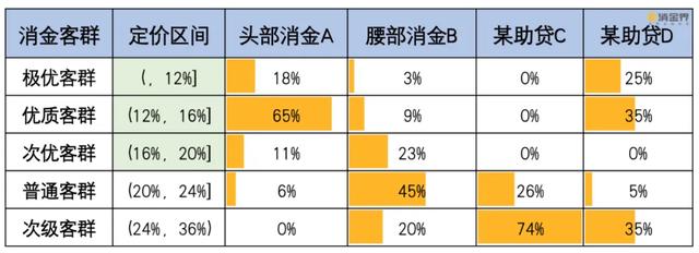 3、消金拒量导出。对定价20%/ 24%以上客群,筛选不出来的客户,最后只能往地方同业机构、下沉助贷平台进行流量导出,做最后一道成本回收;