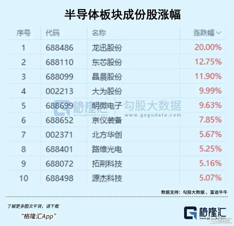 作为AI产业链的上游领域,近月一直调整的半导体则迎来回暖,龙迅股份20cm涨停,晶晨股份、东芯股份涨超10%,中微公司、北方华创、华虹公司也纷纷大幅反弹,带动半导体设备ETF易方达(159558)涨2.1%,科创板50ETF(588080)上涨0.36%。